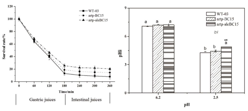 最終突變株artp-aleBC15具有更好的益生菌性能(即對模擬胃腸道條件的高耐受性和潛在的抗菌活性),并已被保存在中國普通微生物培養收藏(CGMCC)中,編號為CGMCC1.17145。